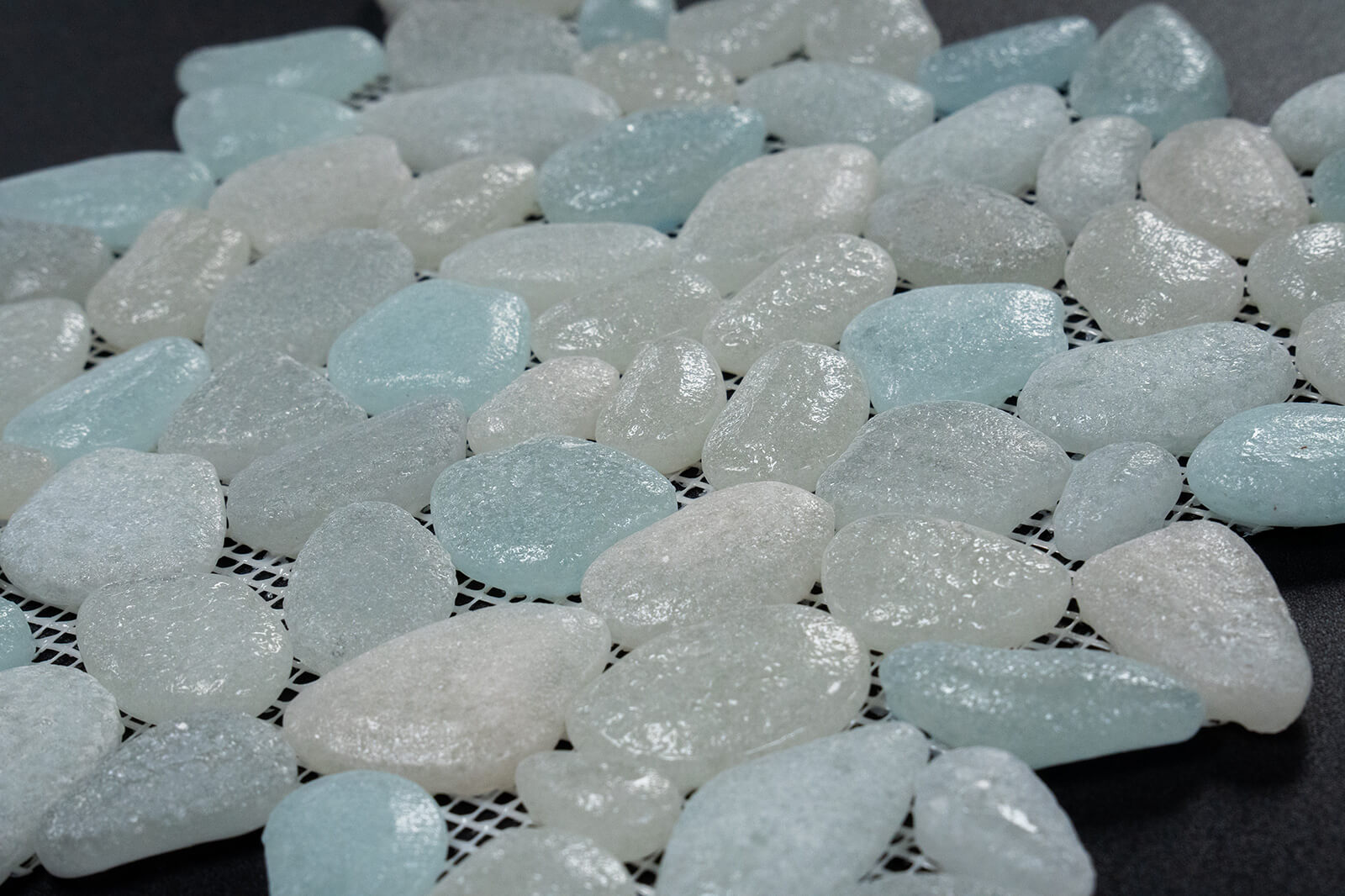 Crafted from recycled glass, Cascade offers a modern, eco-friendly surface in two distinctive shapes. Droplets feature refined penny-round mosaics, while Stones present an organic pebble style, each bringing rich color and luminous depth to walls and accents. Durable and low-maintenance, Cascade requires no sealing and cleans easily, making it a stylish and sustainable choice for contemporary interiors.