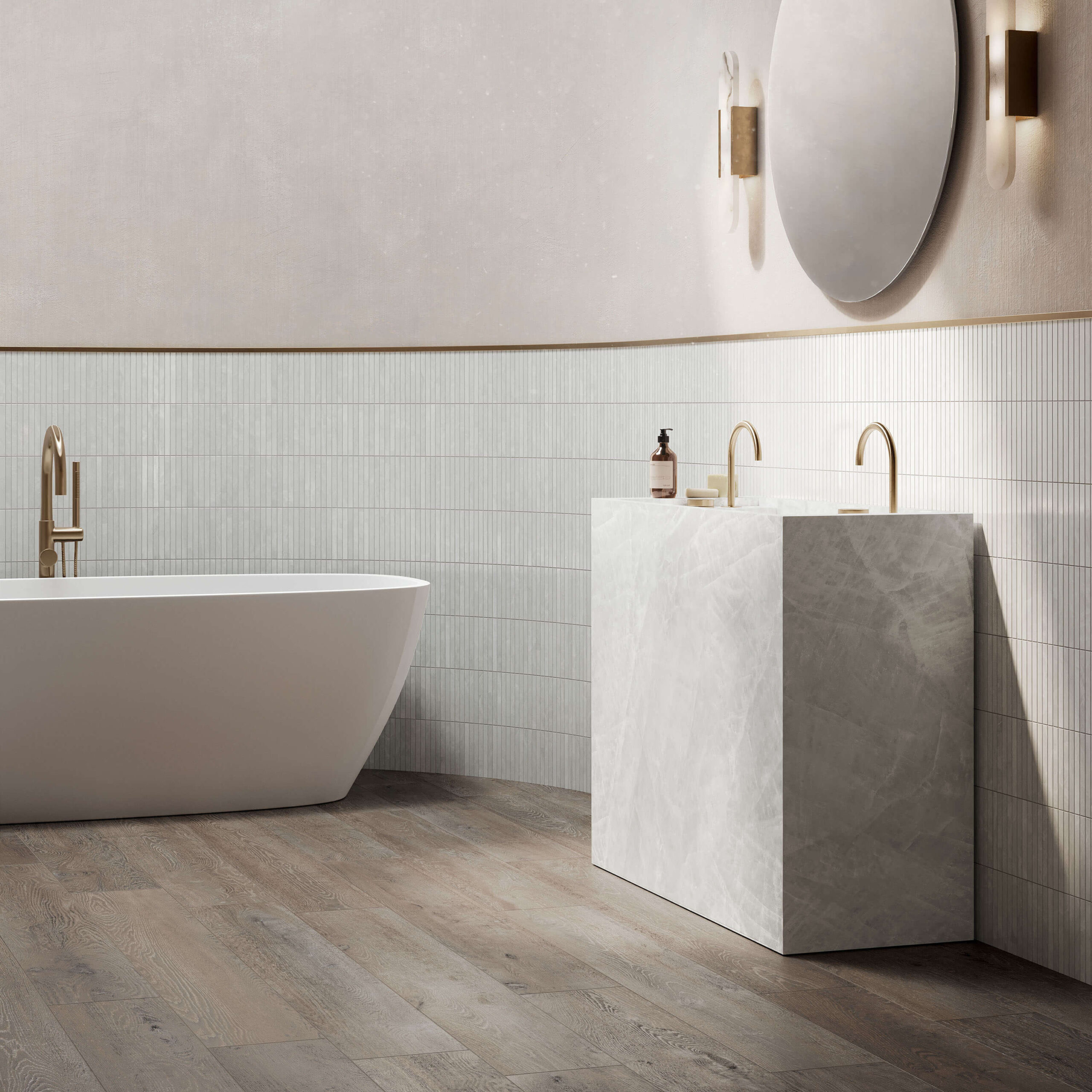 Graceful and contemporary, Costella blends silky satin and high-gloss finishes to create an elevated, luxurious surface. Its refined color palette and subtle depth reflect natural beauty while offering a modern edge, making it an ideal choice for walls or floors where elegance and sophistication take center stage.