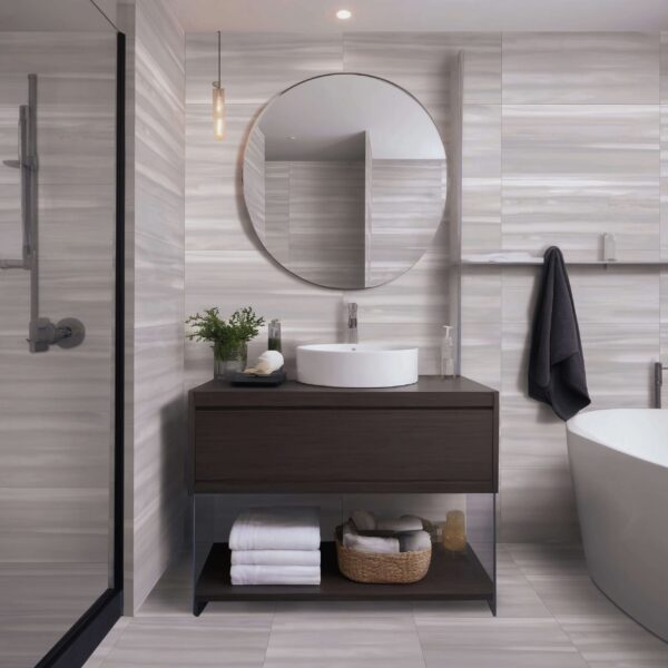 The Winter Stone Series combines modern design with precision craftsmanship. Its soft, linear patterns emulate the look of natural stone while maintaining a contemporary edge. Available in Ice White and Glacier Gray, this series includes 12” x 24” field tiles and 2” x 2” mosaics, offered in both matte and polished finishes. Durable and versatile, Winter Stone is ideal for walls, floors, and decorative accents in any setting.