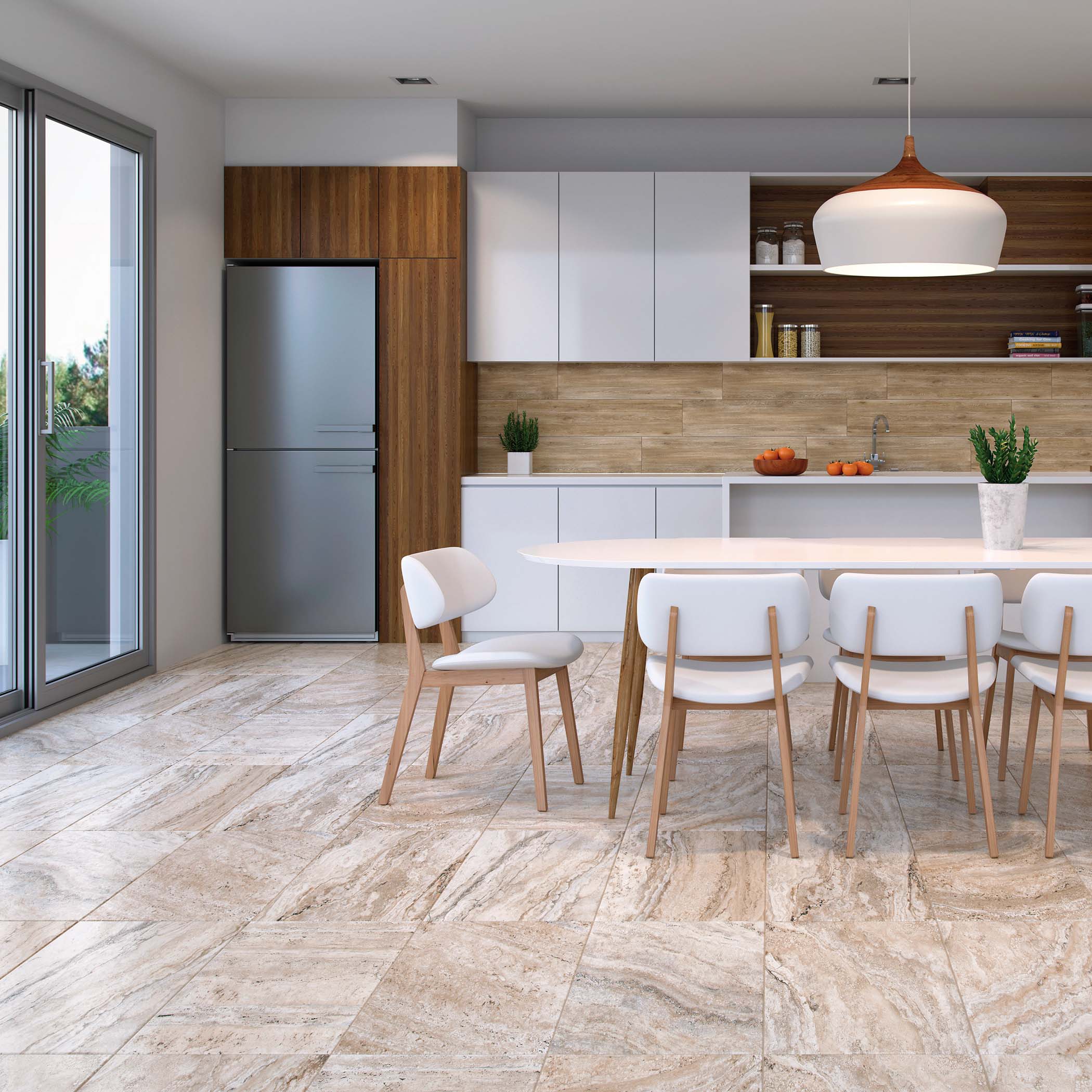 Introducing the Lithology Tile Series, a distinctive field tile collection offering a modern interpretation of classic marble aesthetics. Designed for both floors and walls, each tile in this series measures 12×24, providing versatility for various spaces. Embracing the timeless appeal of Travertino crosscut, this tile captures the raw essence of marble. Inspired by natural matter and color palettes, Lithology Empire preserves the original tone variation and direction of the veining for a classic yet modern aesthetic.