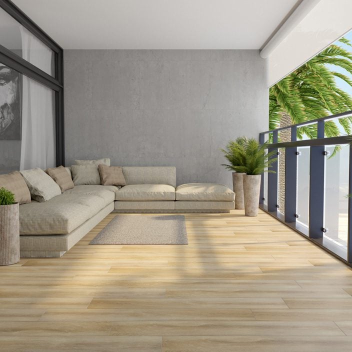 The low variation with subtle grain wood look porcelain tile.