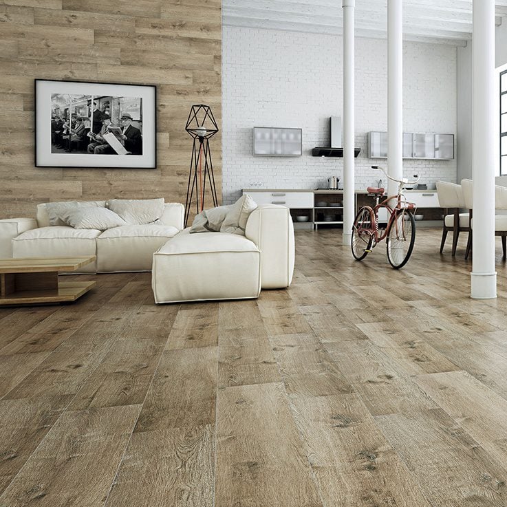 A highly popular natural wood looking tile with beautiful graining and texture throughout this porcelain tile.