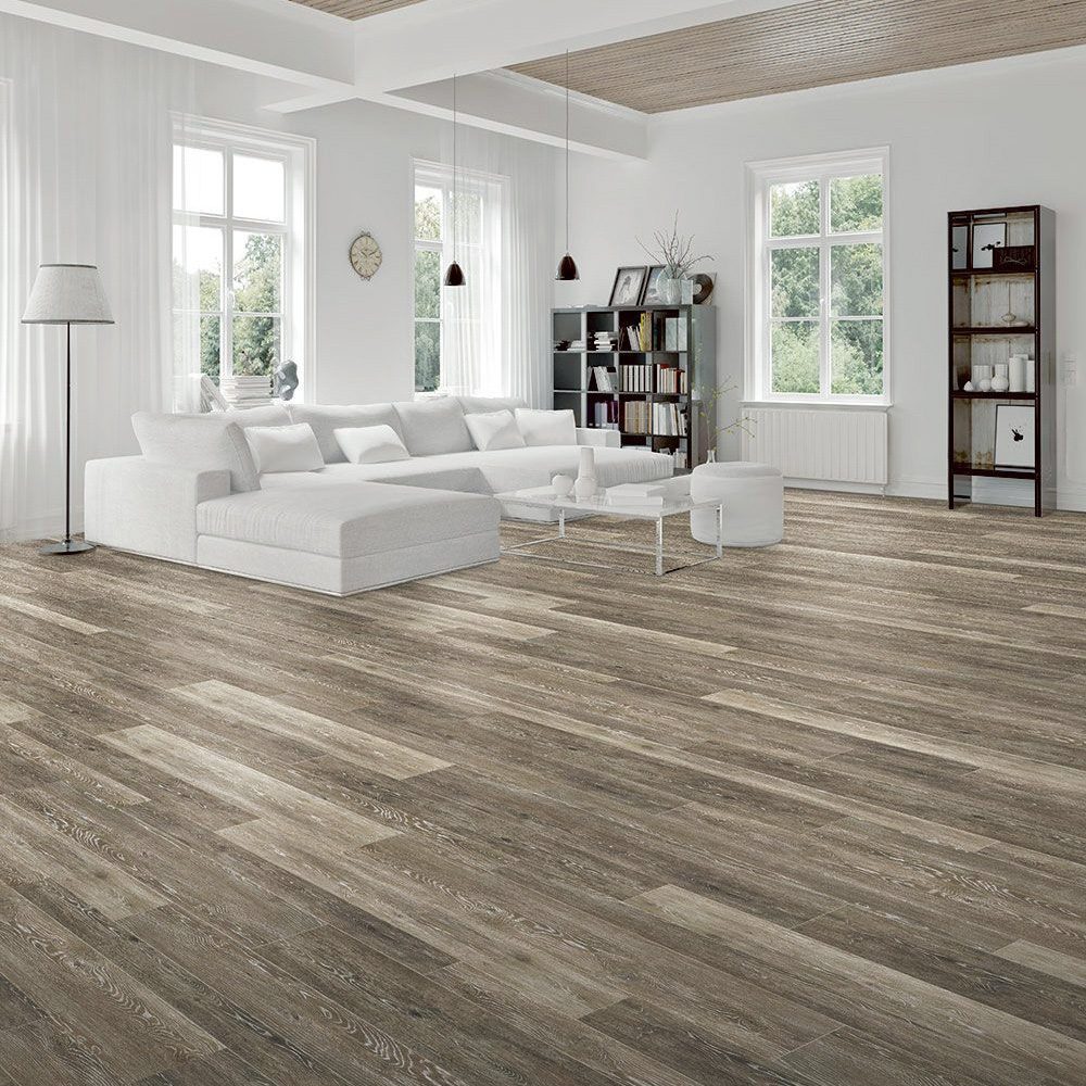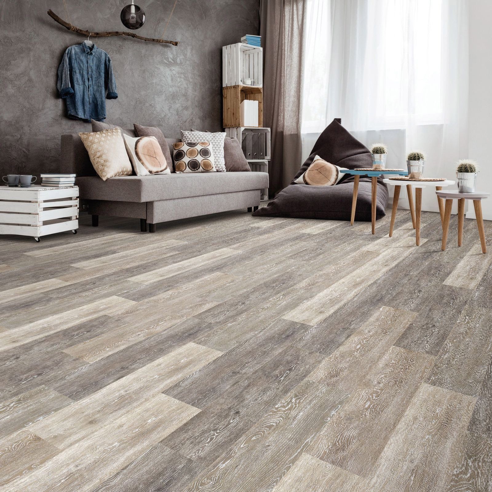High end luxury vinyl with variating graining and color throughout. Ranging in color from white to medium gray.